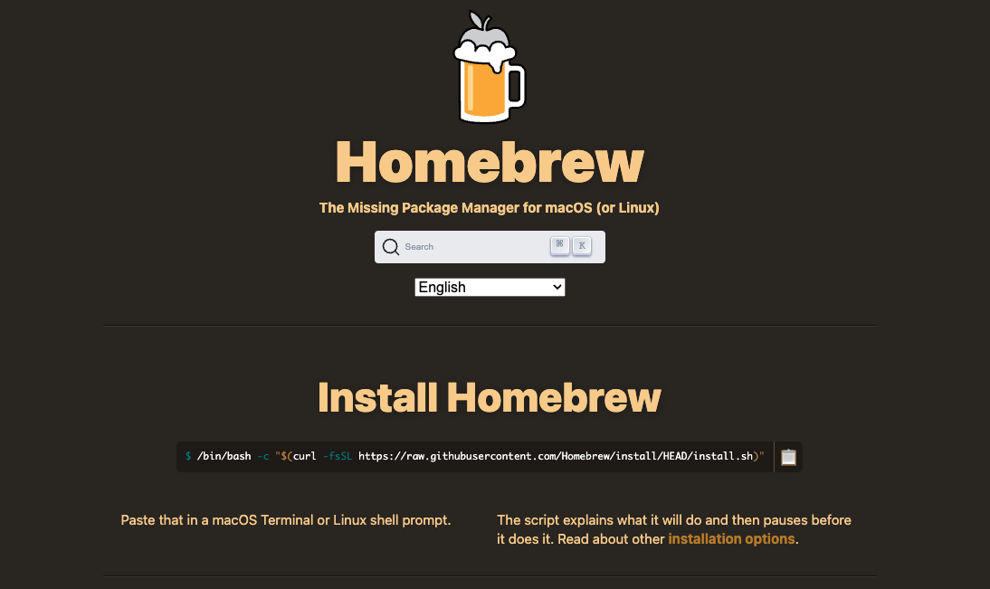 해당 페이지에서 homebrew를 클릭하시면 HomeBrew 페이지로 이동하게 됩니다.