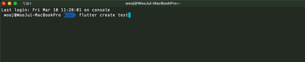 현재 디렉토리를 기준으로 Flutter 프로젝트를 생성합니다. 프로젝트명을 설정하실때는 스네이크 표기법 ( 소문자, _ ) 사용을 하셔야 합니다. (언어에서는 카멜표기법을 쓰던데 왜그러지.....)