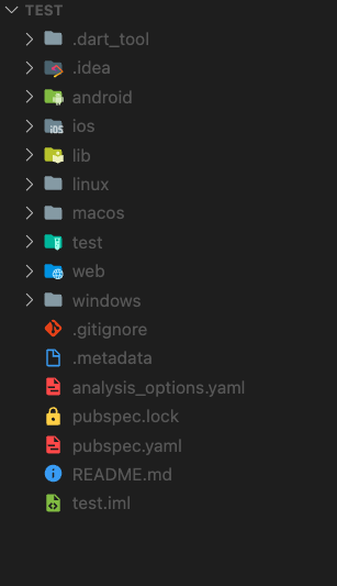 ios, android, macos, web 과 같은 폴더들은 나중에 각각의 플랫폼으로 배포를 할때 건들이게 되는 파일들입니다.